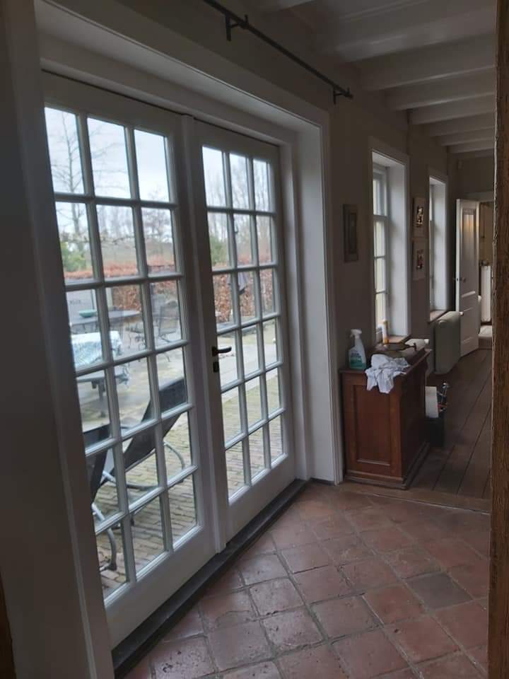 In Jaarsveld hebben wij van een monumentale boerderij het binnen schilderwerk verzorgt. De gevelkozijnen zijn weer tiptop in orde. Er was veel achterstallig onderhoud en slecht of oud kitwerk, dan krijg je onherroepelijk houtrot situaties. Dat roept om vakmanschap en het resultaat mag er dan ook zijn.